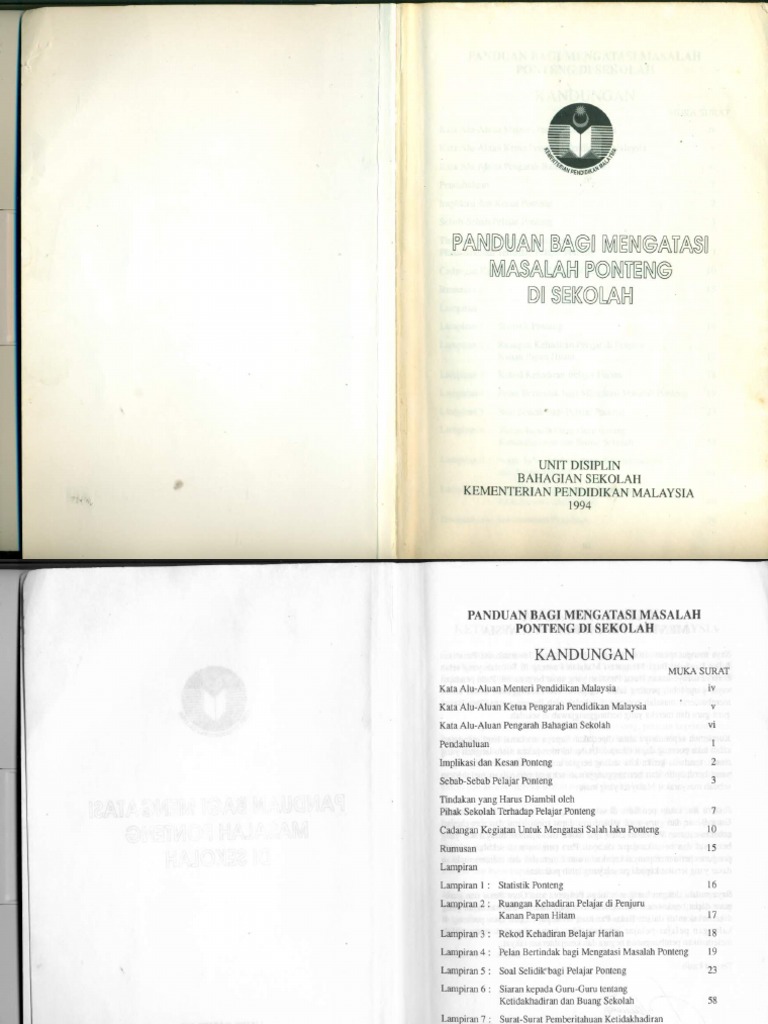 Related : Buku Panduan Mengatasi Ponteng Sekolah - Berdasarkan buku panduan bagi mengikut masalah ponteng di sekolah (kpm:1994) seperti yang dipetik oleh ramlah jantan dan mahani razali..